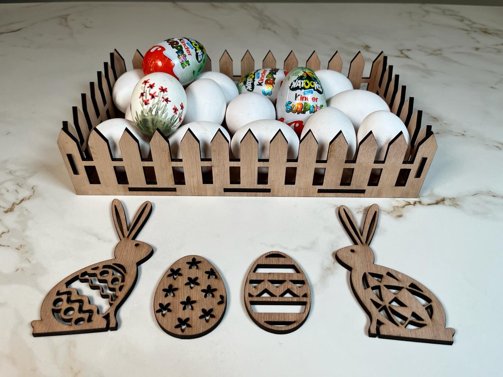 Met onze eiermand kun je jouw eigen paasmeesterwerk creëren. Versier de mand met de bijgeleverde figuren en laat je verbeelding de vrije loop! Of het nu gaat om kleurrijke hekjes, schattige paashaasjes of vrolijke eieren, de mogelijkheden zijn eindeloos.
